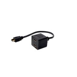 Cavetto a Y sdoppiatore con 1 connettore maschio HDMI 19 poli tipo A e 2 connettori femmina HDMI 19 poli tipo A. Lunghezza cm 20.