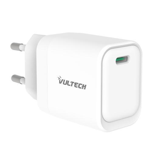 Caricatore Adattatore Universale Vultech CC20-1C 1 Porta Type-C PD20 GaN 20W - Bianco Dimensioni Compatte