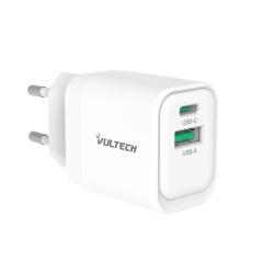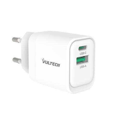 VULTECH CARICATORE ADATTATORE UNIVERSALE, 1 X TYPE-C PD30 E 1 X USB QC3.0, GAN PPS 33W, BIANCO COMPA